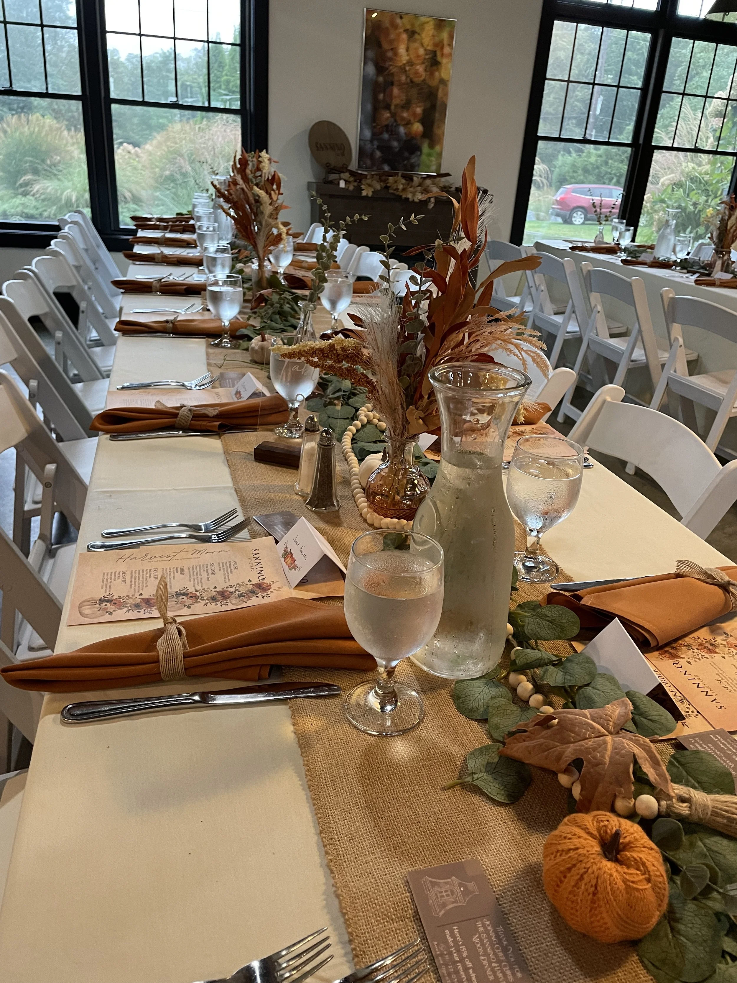 Includes: Use of Sannino Vineyard Tasting House, Members Lounges, Bathrooms, Tables, Chairs, Umbrellas, Water, Ice, Glassware, and Two Sannino Team Members to assist and use of our tasting room furniture, as well as, 1/2 hour before/after event for set up & break down. Additional time available at $500 per half-hour.